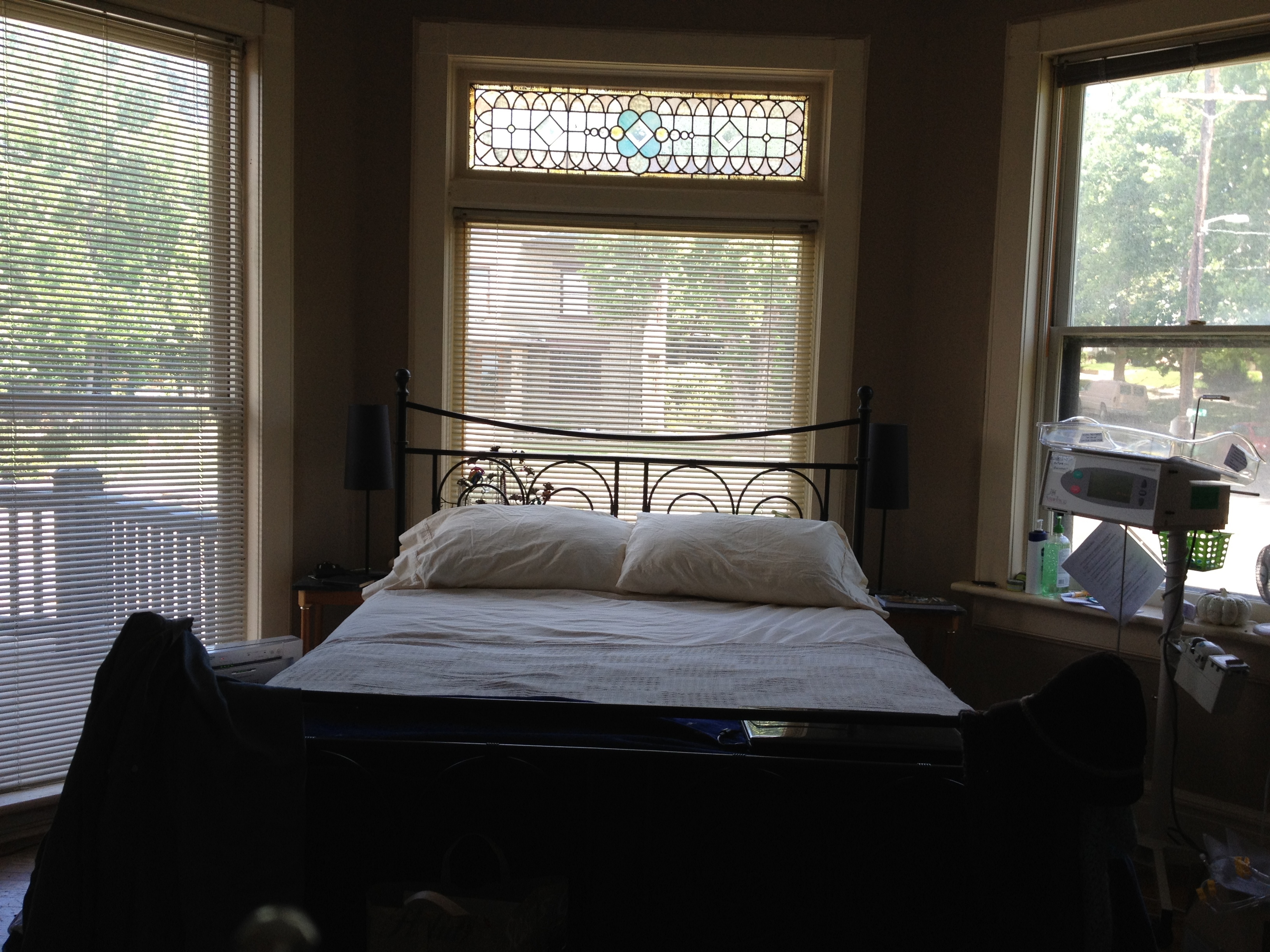 Our reorganized bedroom, with my dialysis machine next to the bed.