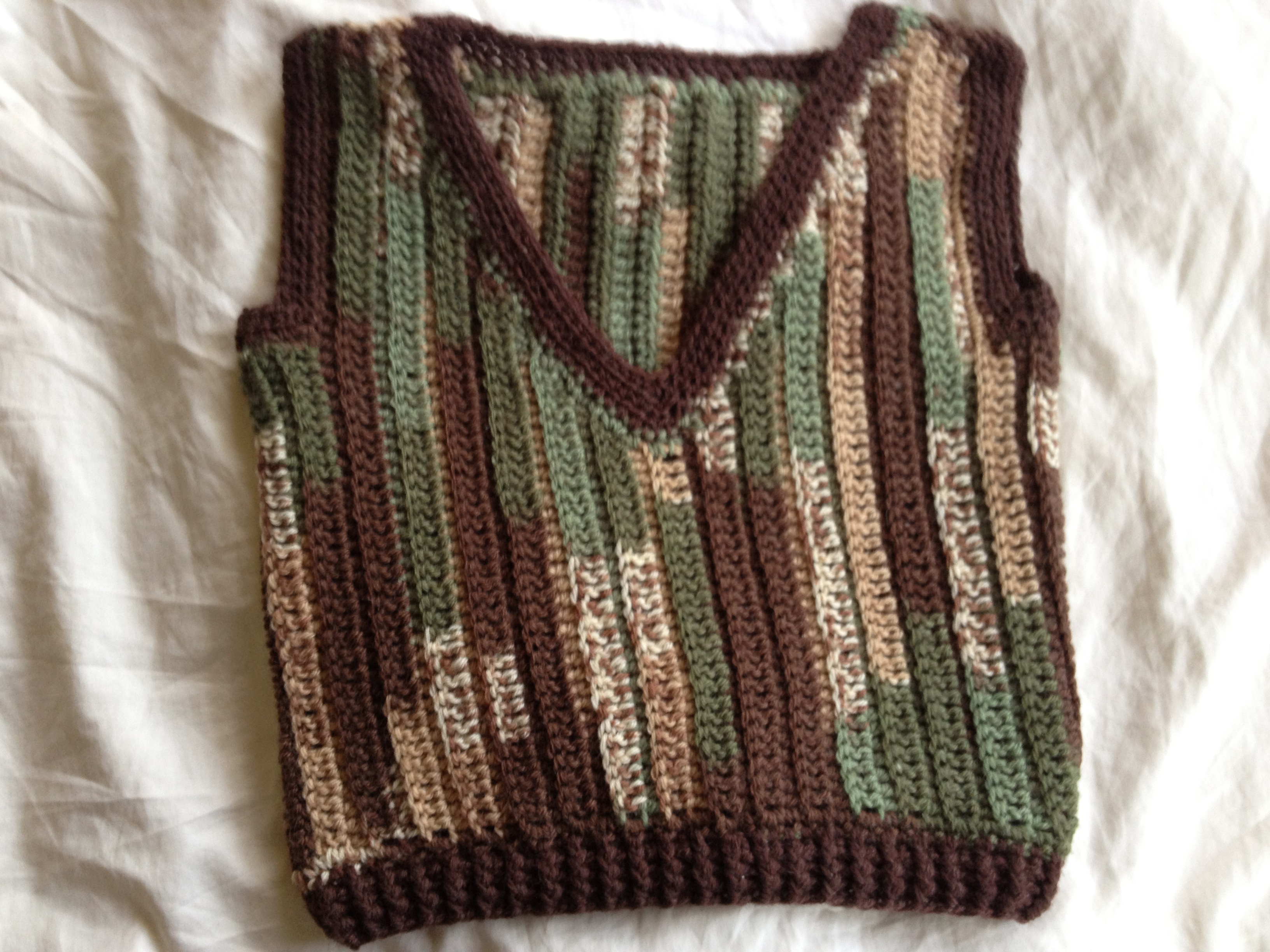 A sweater vest for one of my friend’s twin babies. The sizing was tricky because the twins were premature, so they were a little smaller than normal, but I needed to size it for how big they would be in the winter. I’m still not sure if I got it right.