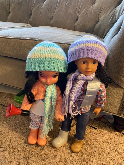 But we still can’t find Native American dolls. My mom bought her a doll that had a Native American look, although I’m pretty sure she was made to be Hispanic, so now we have two. Not that we need many; my daughter doesn’t love dolls. She’s not into playing mom, and her dolls are always her little sisters. But she does like to get them dressed up and ready to do different activities, even if they habitually sass her, which she complains to me about all the time. (I guess they are like their older sister.) And I like to have her see that someone out there is making something that looks like her.