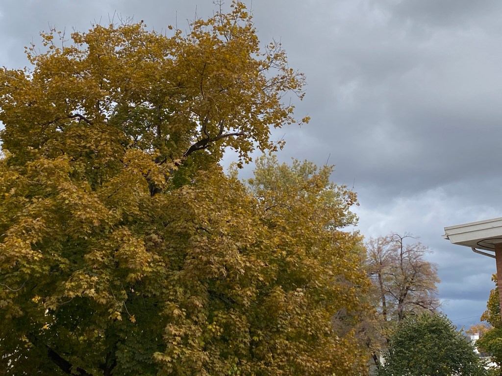I love this time of year. For someone who hates the heat as much as I do, the cooler temperatures are a relief and a joy. Is there anything cozier or more comforting than warming up after being briskly chilled? It’s one of my greatest pleasures. And the textures! Soft earth, crunchy leaves, a buffeting wind…this season is sensational in the truest sense of the word. I think what I love most though are the gray storms rolling in, tossing the multi-hued leaves, interspersed with skies that particular shade of vivid blue that only shows up in the fall. I never get tired of the autumn skies.