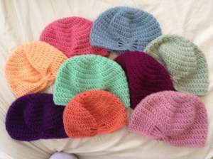 Hats for the down syndrome walk. I’m making some in men’s, women’s, girl’s, and boy’s sizes. These are the womens’ hats.